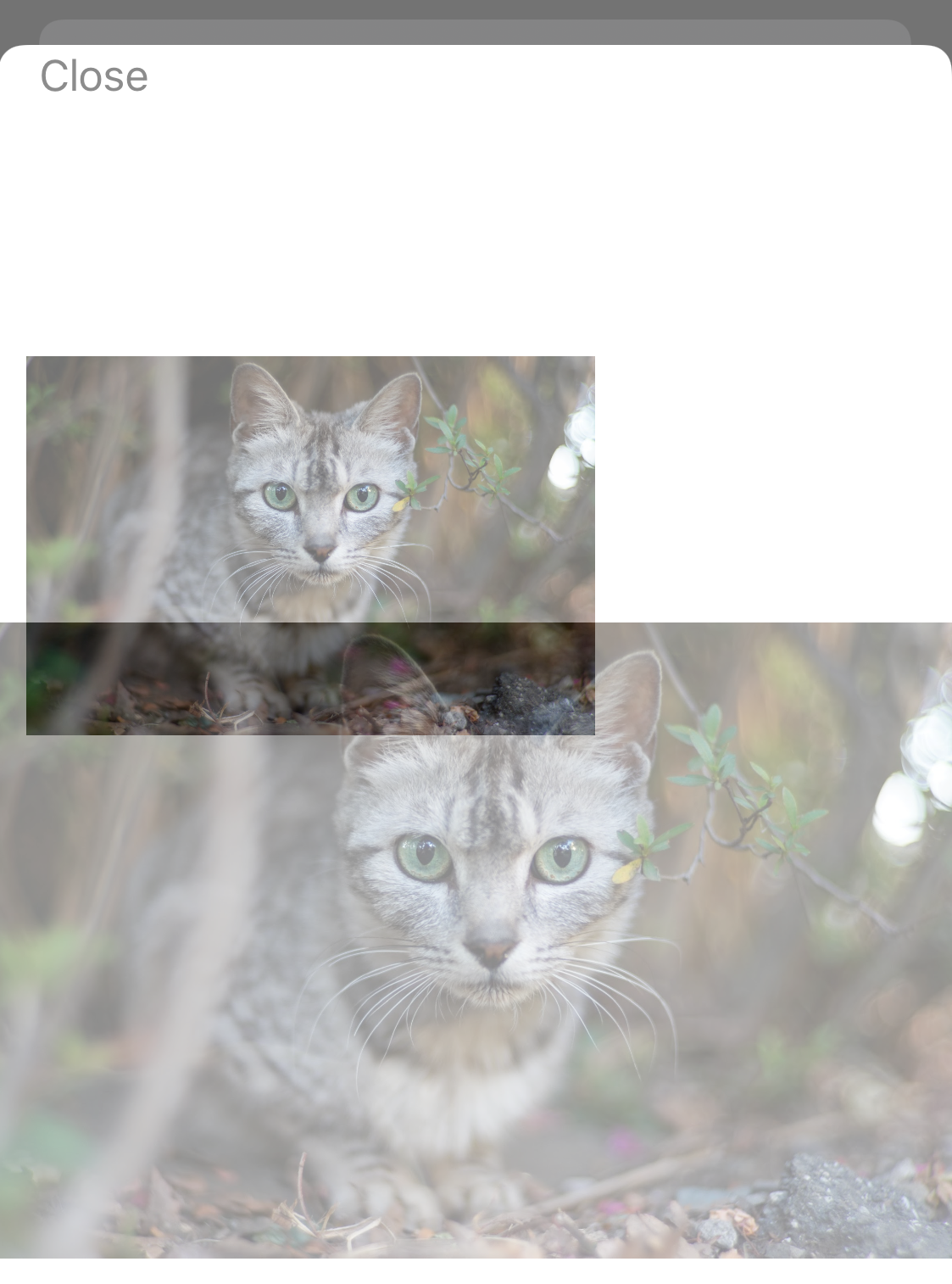 This screen grab (from iOS 14) shows the transition from your example app after clicking on the cat in the top left corner: