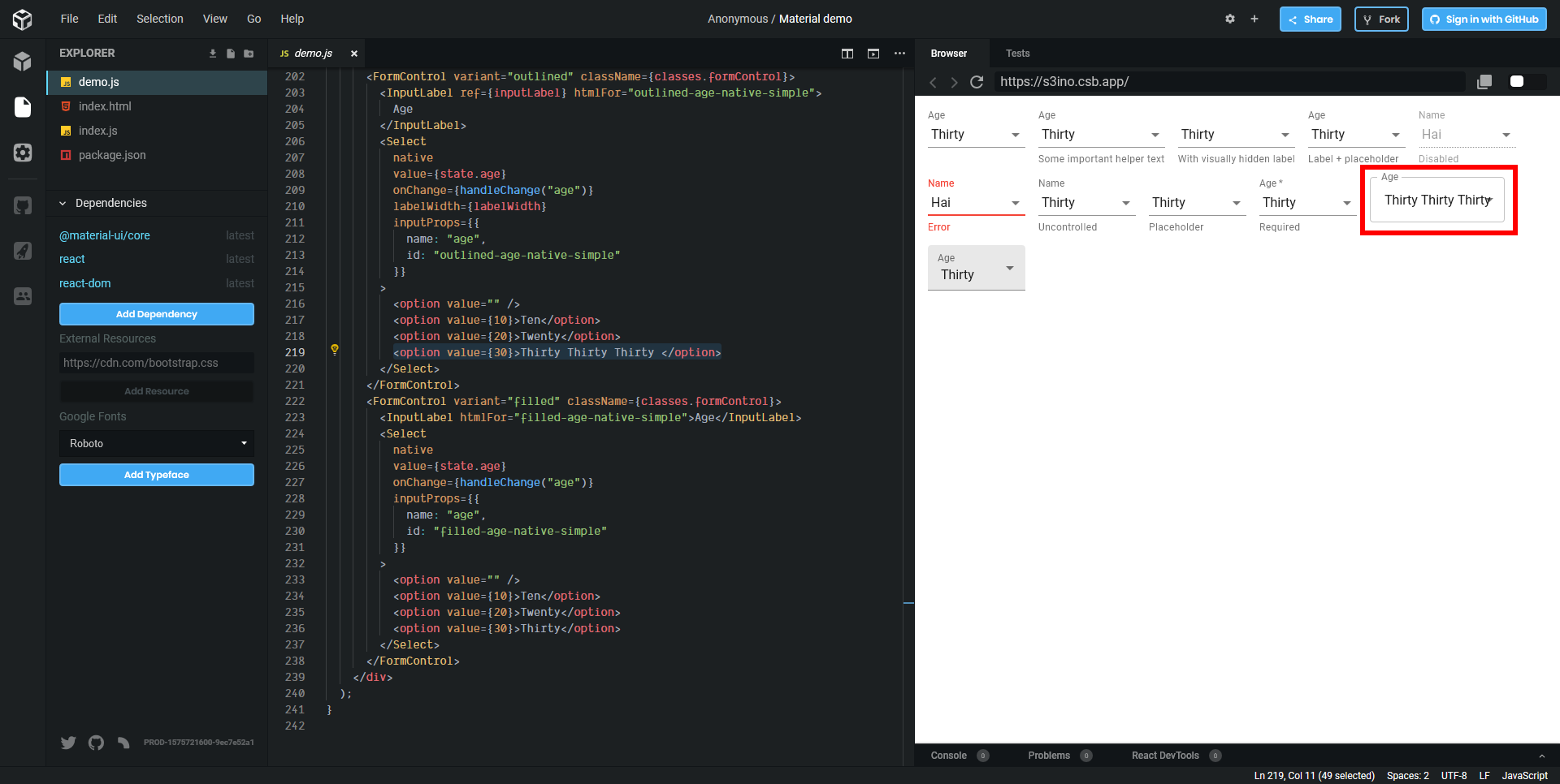Open https://codesandbox.io/s/material-demo-ooctx