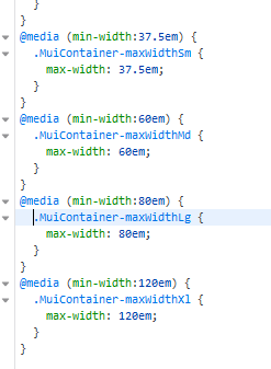 em) the media-query/breakpoints get created properly and they use the units defined.However, the Container component is still using no units at all (defaults to pixels) which makes everything break apart.