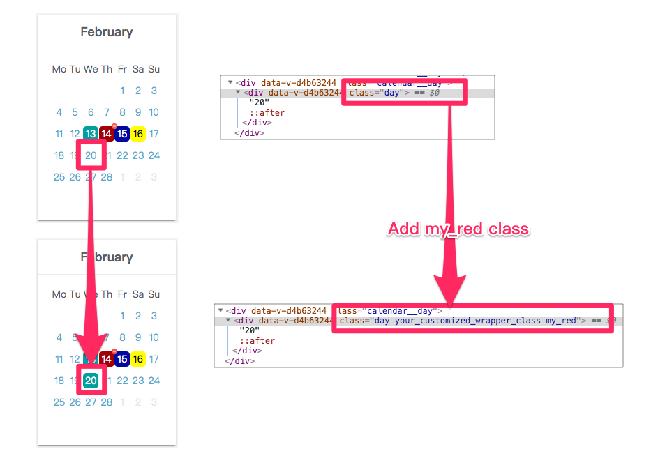 { date: '2019-02-16', className: 'your_customized_classname' }
