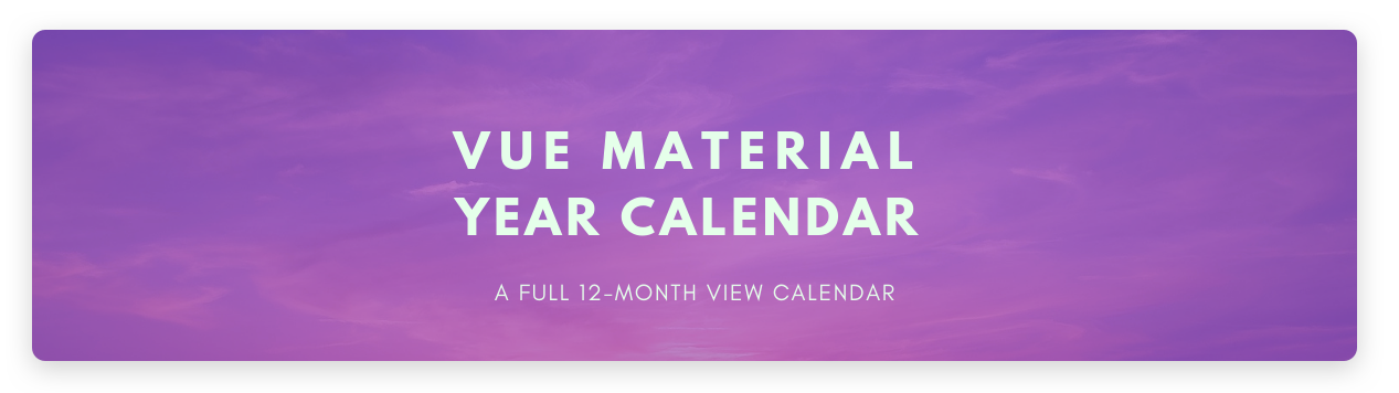 There is no full year (12 months on a page) calendar right now, the Vue-material-year-calendar is designed to solve this problem.