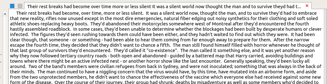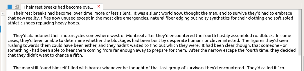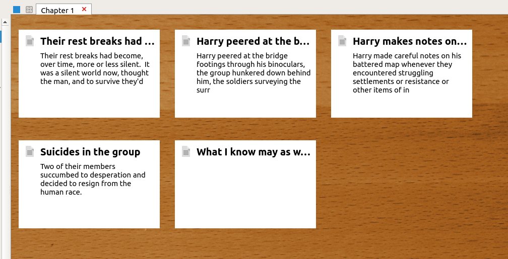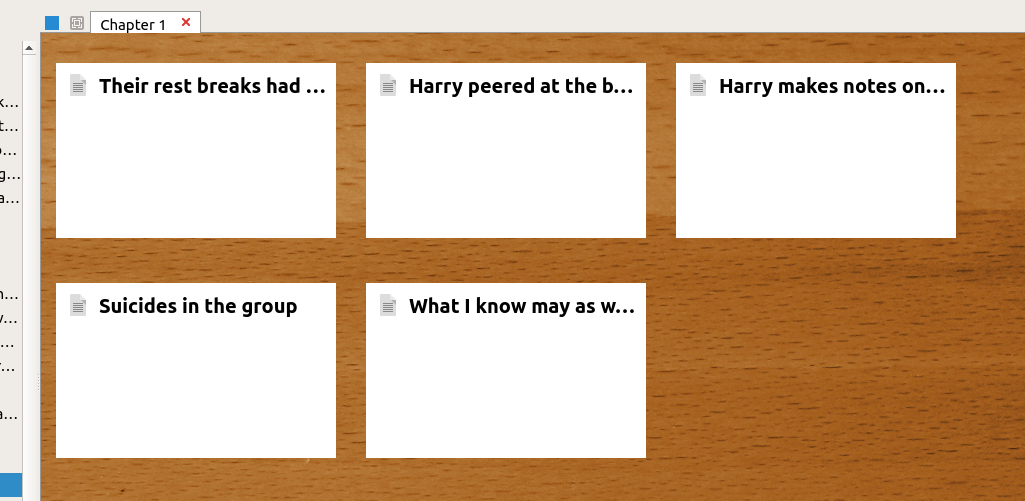 Yeah...so oops, the title trimming was an experiment that I neglected to remove. The issue is that long titles end up with a tab (in the editor) that's the full length of the window. They're also hard to edit, which is why I duplicated them on import into the body. I have a few of them. Without creating a summary, the cards, well, don't have a summary ;-) It's common practice to take a snippet from somewhere for a summary if there isn't one. Perhaps making the title into the summary is a better idea. I am, of course, open to better ideas than what I've done ;-) Oh, and here's some different illustrative screenshots |