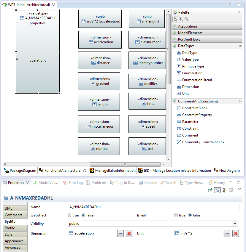 We can easily provide a similar representation using SysML datatypes, but the split in different datatypes will produce a model that is hard to read and modify. A solution would be to provide a transformation from SysML to a textual format for reviews.