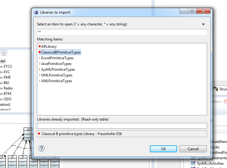 The following screenshots show how an integration of a UML Library would look like. Just ignore that the library is called ClassicalBPrimitiveType and imagine something like EtcsDataDictionary ;)