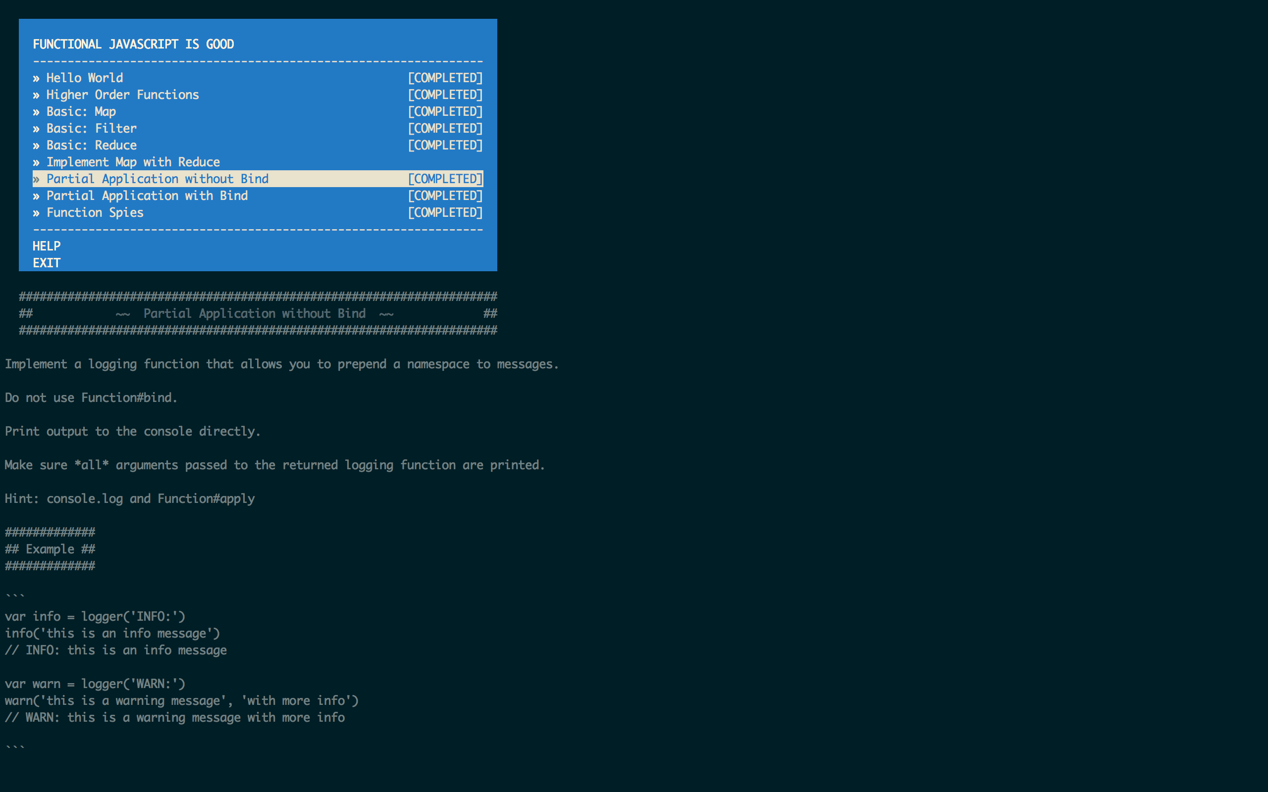 We're looking for more practical problems, so if you come across a problem in your day-to-day work which was solved simply and elegantly with some functional JavaScript techniques, please help us create an exercise out of it.