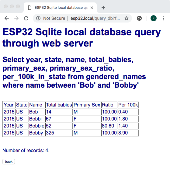Even with the 500 odd kilbytes RAM available on ESP32, millions of records and gigabyte sized databases can be accessed.