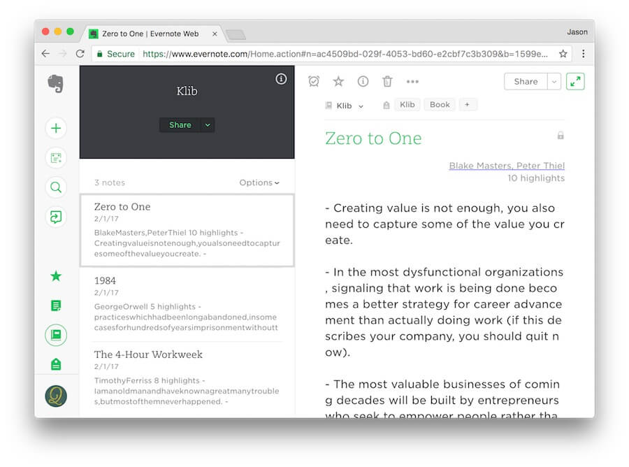 Klib,Book,Read Bookfor content exported into Evernote. - No matter how you rename or move Klib notebook in Evernote, Klib could exactly export to the same notebook.