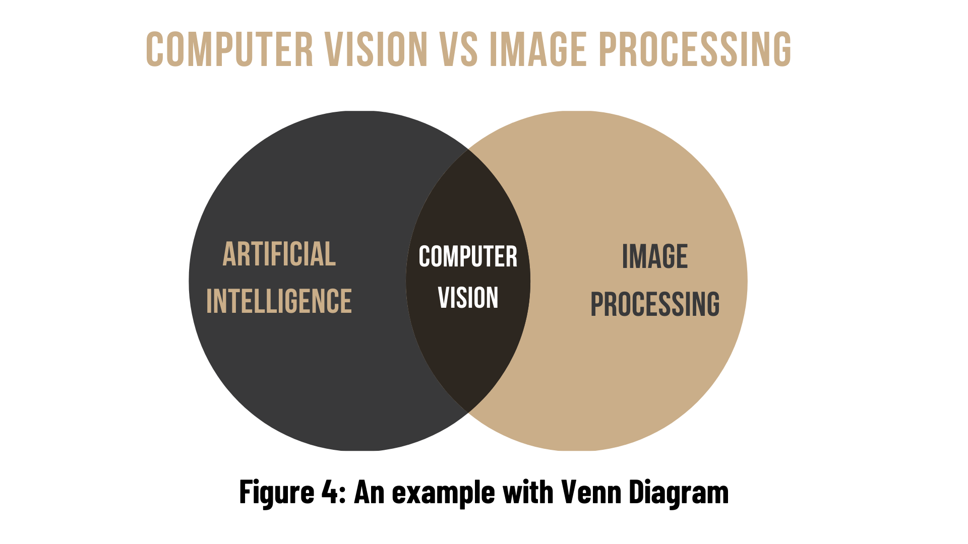 Both of the fields is working with visuals, i.e., images and videos. In fact, although it is not very accurate, we can say that if you use artificial intelligence algorithms and image processing methods in a project, that project is probably turning into a Computer Vision project. So Computer Vision is an intersection of Artificial Intelligence and Image Processing that usually aims to simulate intelligent human abilities.