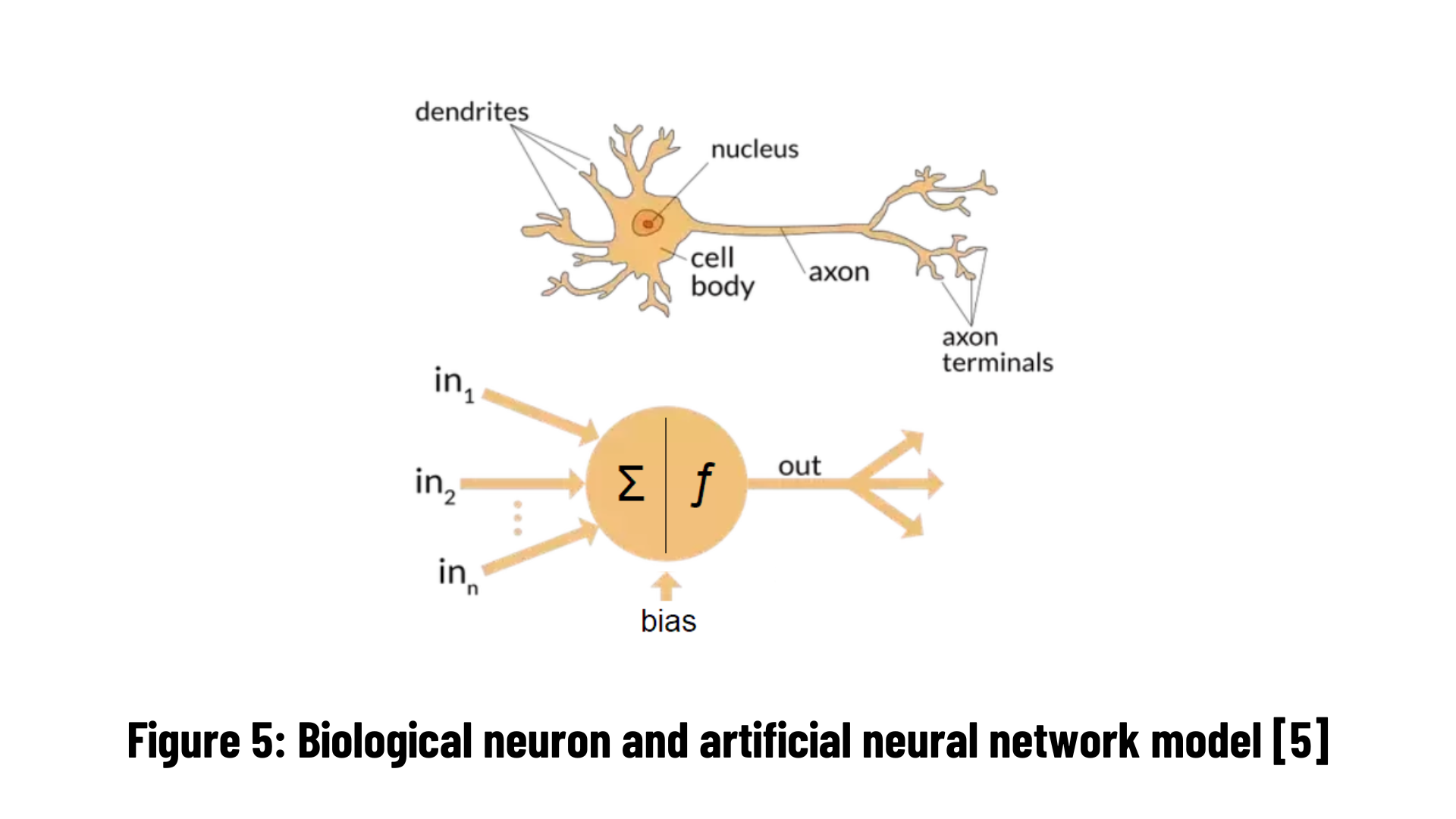Biological neuron and artificial neural network simulations are given in Figure 5. Biological Nervous system elements and their equivalents in the artificial nervous system are given in table below. Here, the biological nervous system is divided into parts and each element is given an equivalent in the artificial neural network system.