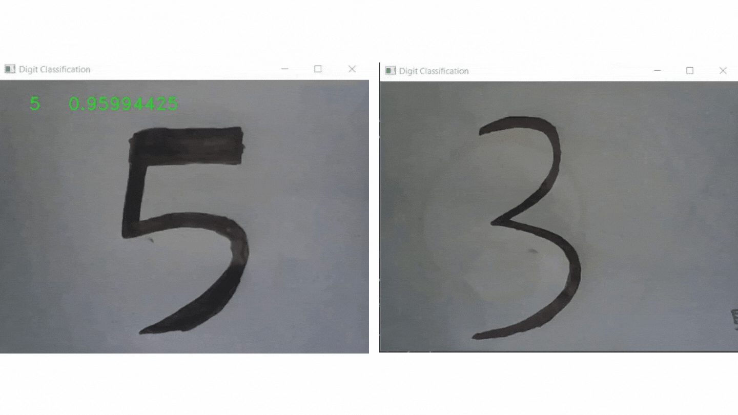 The code below is for capturing the video, loading the saved model and classifiying the digit in real time.