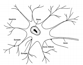 Neural networks are closely modeled on biological processes for information processing, including specifically the nervous system and its basic unit, the neuron. Signals are propagated in the form of potential differences between the inside and outside of cells. The main components of a neuronal cell are shown in Figure 1. Dendrites bring signals from other neurons into the cell body or soma, possibly multiplying each incoming signal by a transfer weighting coefficient. In the soma, cell capacitance integrates the signals which collect in the axon hillock. Once the composite signal exceeds a cell threshold, a signal, the action potential, is transmitted through the axon. Cell nonlinearities make the composite action potential a nonlinear function of the combination of arriving signals. The axon connects through synapses with the dendrites of subsequent neurons. The synapses operate through the discharge of neurotransmitter chemicals across intercellular gaps, and can be either excitatory (tending to fire the next neuron) or inhibitory (tending to prevent firing of the next neuron) [1].