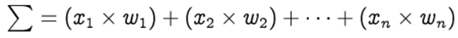 Step 1: For each input, multiply the input value xᵢ with weights wᵢ and sum all the multiplied values. Weights — represent the strength of the connection between neurons and decide how much influence the given input will have on the neuron’s output. If the weight w₁ has a higher value than the weight w₂, then the input x₁ will have a higher influence on the output than w₂.