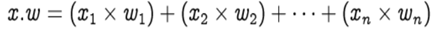 The row vectors of the inputs and weights are x = [x1, x2, … , xn] and w =[w1, w2, … , wn] respectively and their dot product is given by