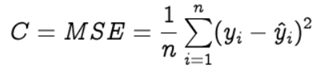 Step 1: To know an estimation of how far are we from our desired solution a loss function is used. Generally, mean squared error is chosen as the loss function for regression problems and cross entropy for classification problems. Let’s take a regression problem and its loss function be mean squared error, which squares the difference between actual (yᵢ) and predicted value (ŷᵢ ).