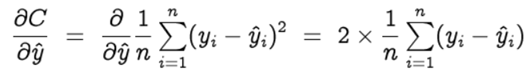 Let’s start with the gradient of the cost function (C) with respect to the predicted value ( ŷ )