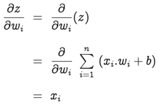 The gradient of z with respect to the weight wᵢ is
