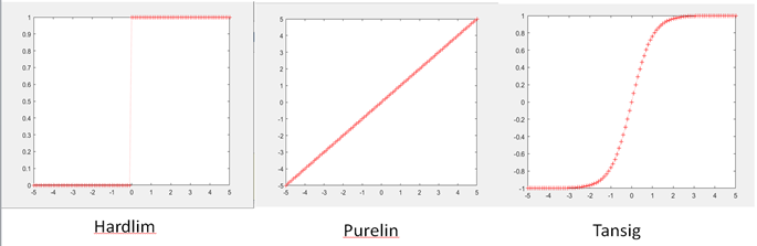 Now let’s check the performance (Figure 6). As you see in Figure 6, we reached the best performance at 28th epoch. So, we can adjust our epoch number to 28 so that it will be more efficient. Last rows on the code shows that how to visualize the activation functions. In our code it show the step function (hardlim). But we can also visualize other functions like tansig and purelim (Figure 7)