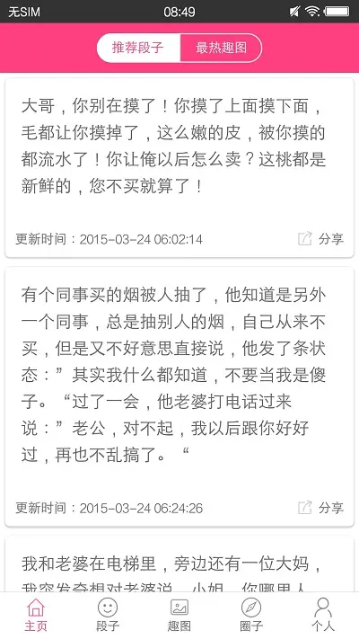 基本功能包括文本段子,内涵图片,用户登录注册,发圈子,发现段子手,产看我的粉丝及关注我的,关注他人,分享笑话等等;