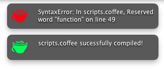 Super simple growl notifications for use with the Node.js Coffeecript Compiler. No more watching the terminal to see if things compiled correctly :)