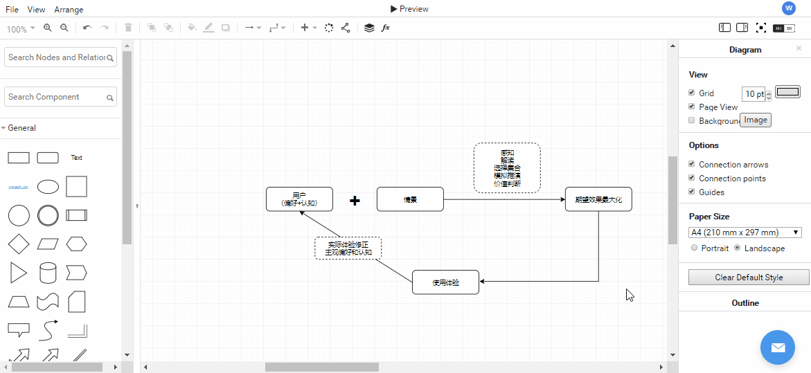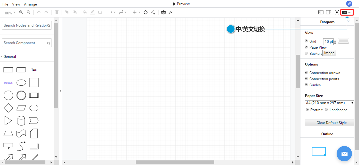 在左侧组件库选择一个形状并将其拖动到绘图页。