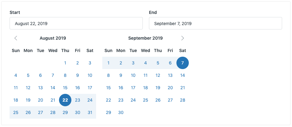 minValueandmaxValuedisplays were off by a single day due to us comparing date values without finding a common day baselineDatepickerRangeusages were unable to have a start and end date that were the same valueChecklist